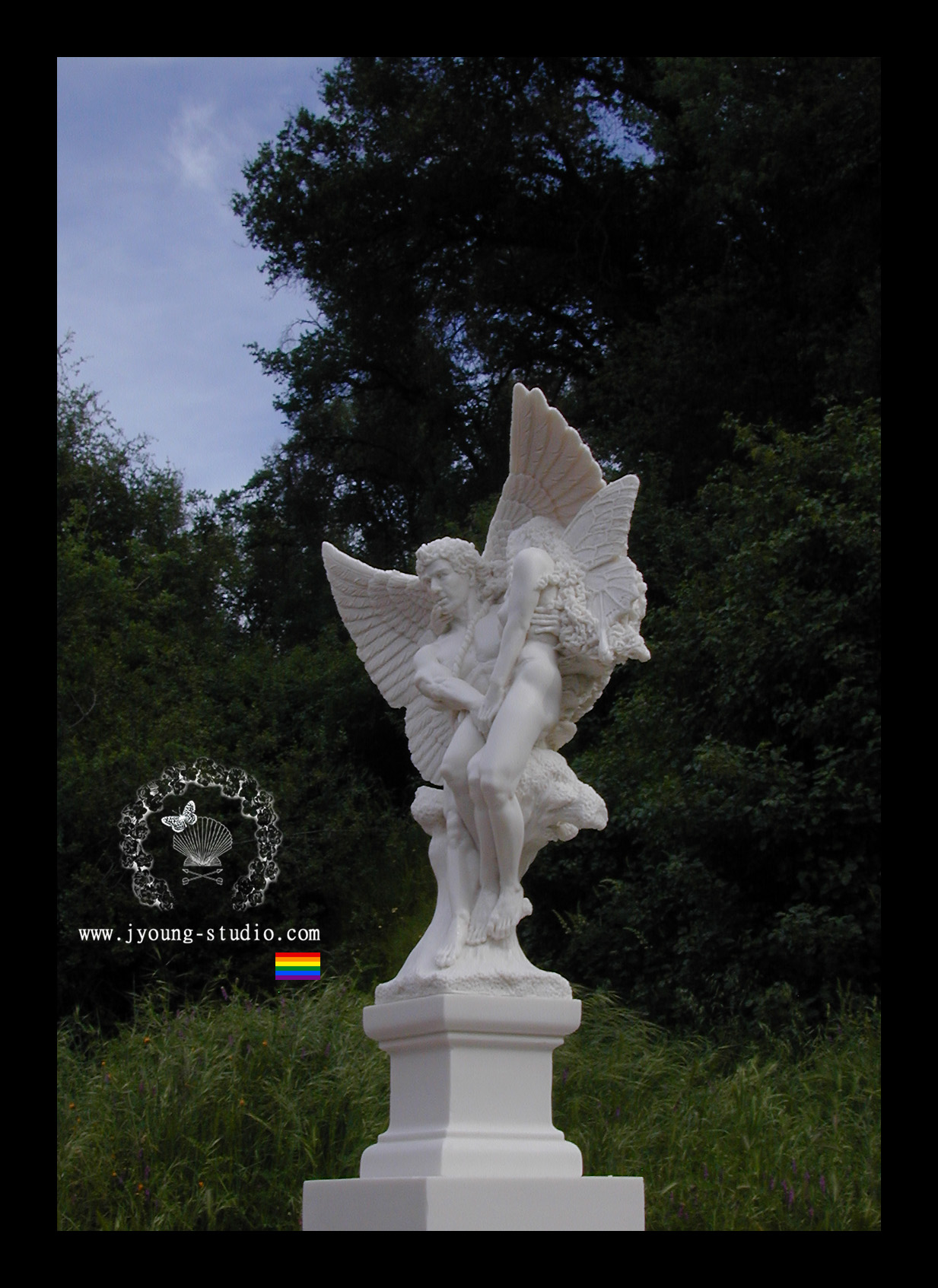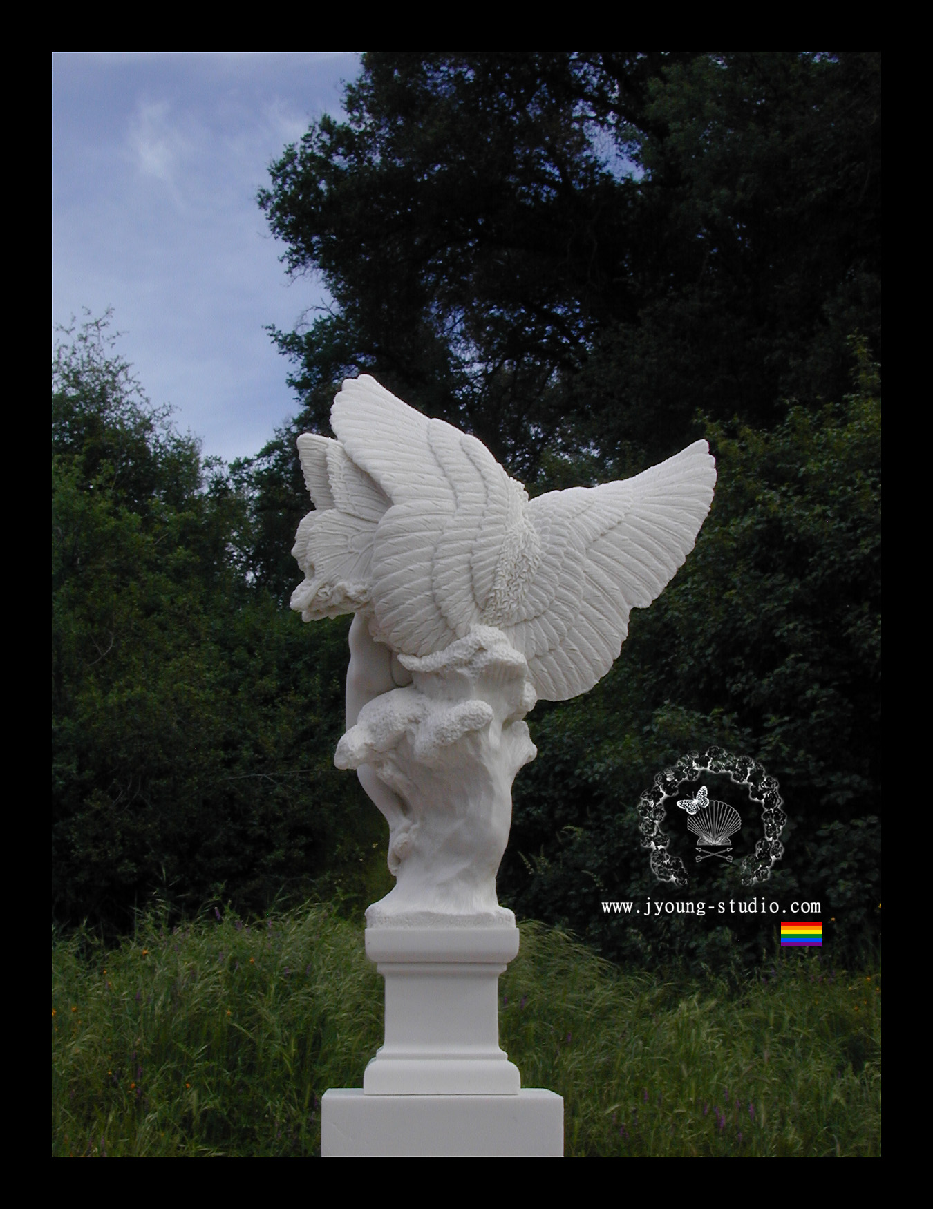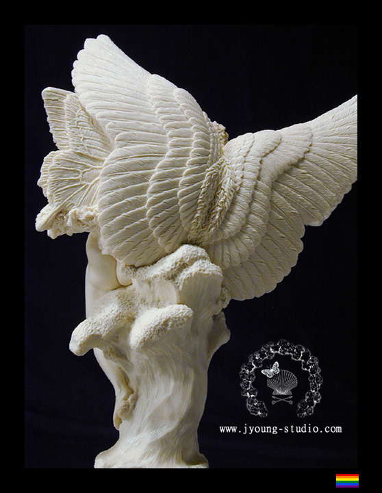 11 inches tall, Off white in color, with a matte finish. Mixed media. Open edition. Signed & dated on the base.