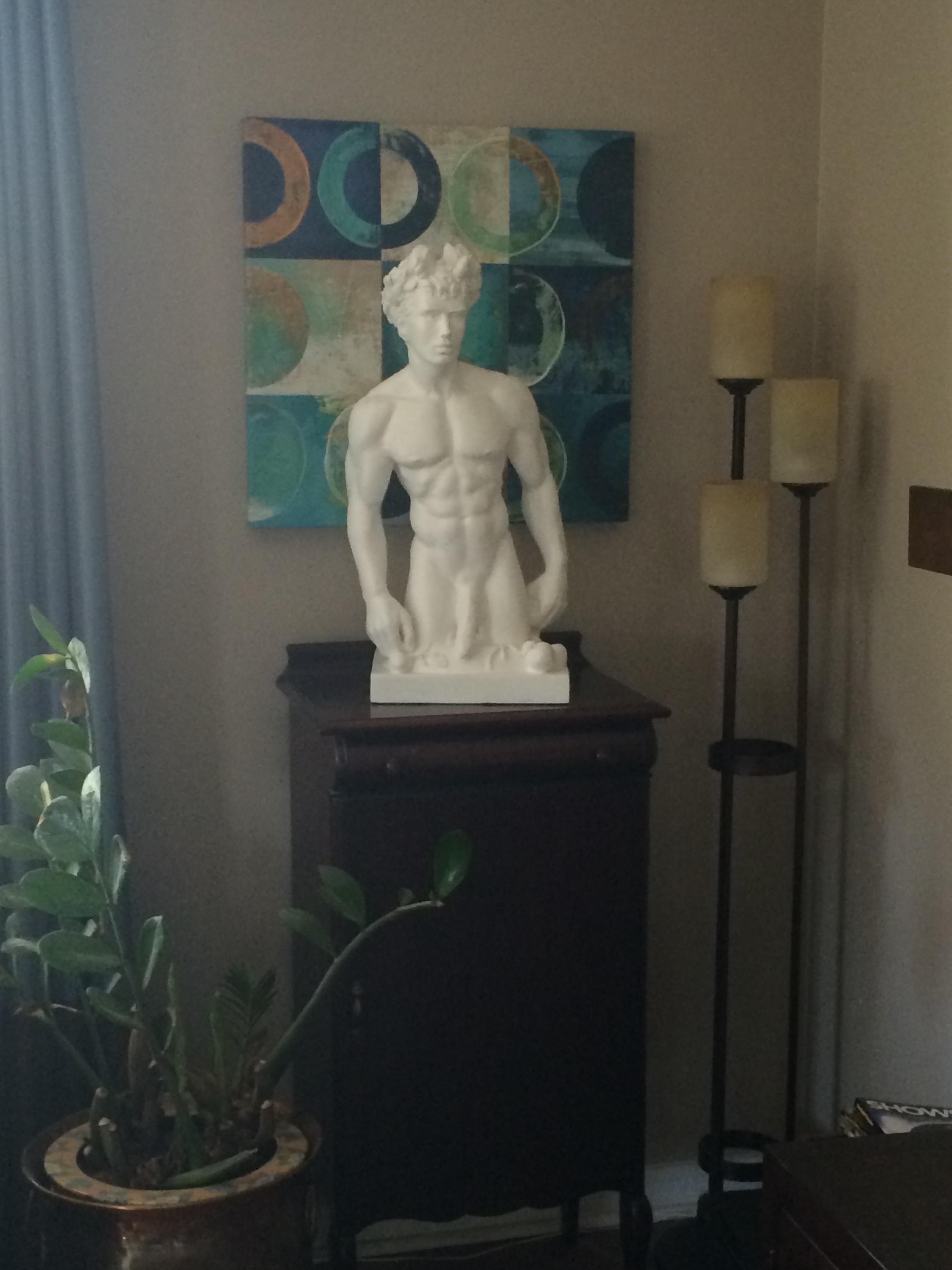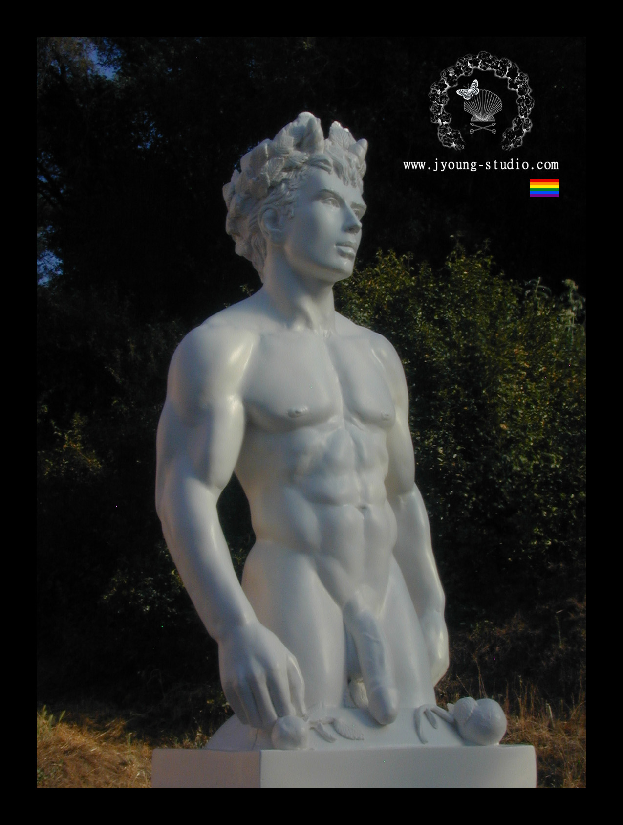 In ancient times, the Idol of Priapus was placed in a garden for good harvest, and to protect against would-be thieves. In this sculpture, I have chosen a young, faun-like, Hellenic depiction.